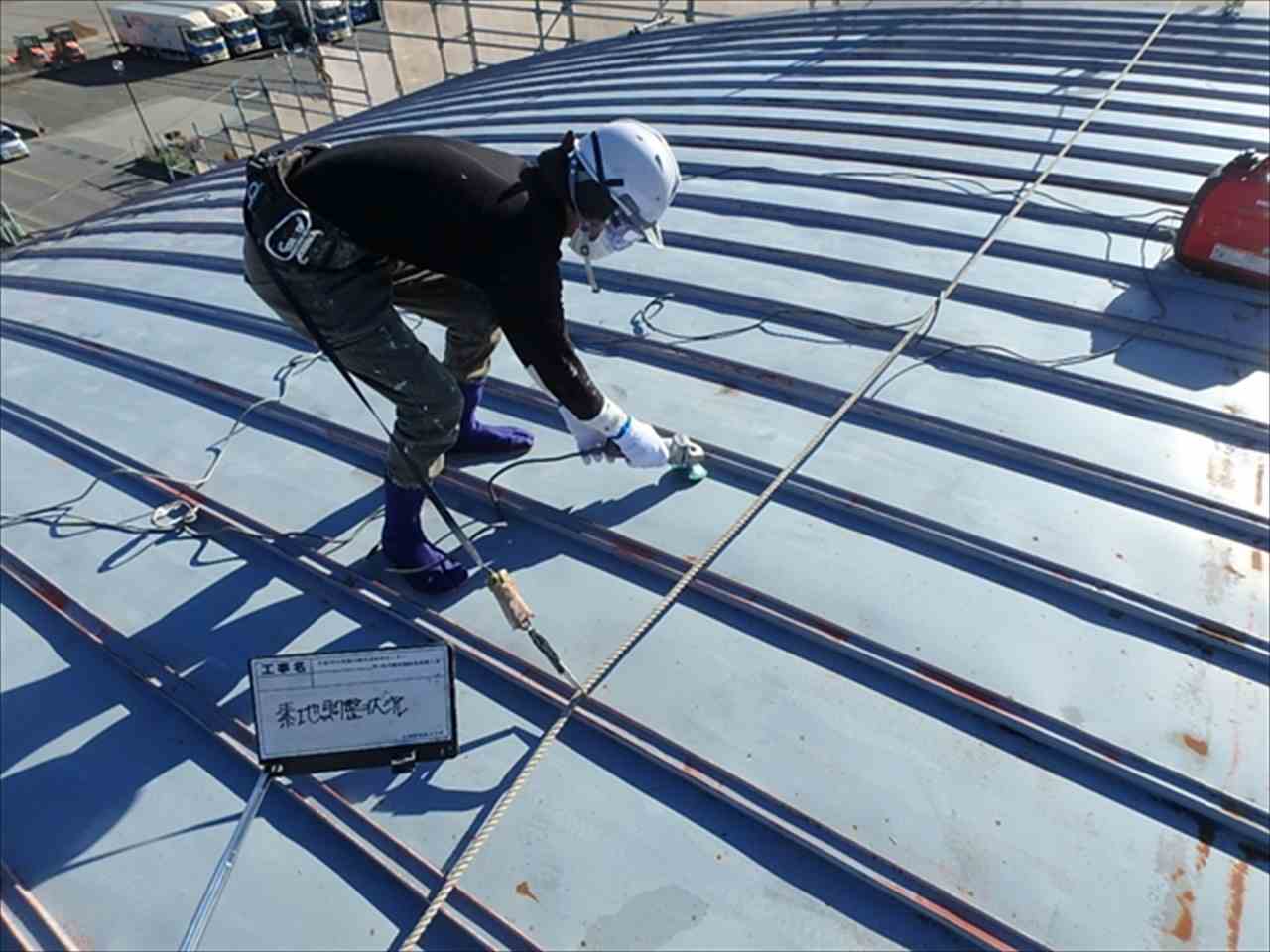第1体育館の屋根を防水材を塗り防水工事をしました。